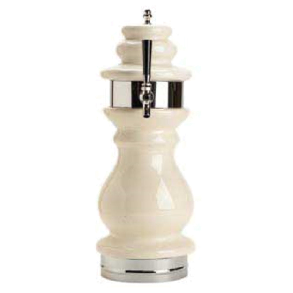 The Micro Matic CT400-1 Braumeister Draft Beer Tower Countertop is a meticulously designed system that stands 24-7/8 inches high with a 9-inch diameter, making it a compact yet striking addition to any bar setup. This air-cooled draft beer tower features a single brass-body faucet, although the handle is not included, providing a sturdy and reliable pouring experience. The faucet has a clearance of 15 inches, which allows for easy filling of various glass sizes, while the 5-5/8 inch on-center distance ensures seamless integration into existing setups. The base of the tower measures 7-3/4 inches in diameter, offering stability and ease of installation on countertops. A hallmark of this tower is its elegant ceramic construction, complemented by a 3-7/8 inch faucet collar that adds a touch of sophistication. Ideal for both commercial settings and home bars, this draft beer tower caters to diverse market segments by delivering exceptional functionality and aesthetic appeal. Its solid construction and precise engineering make the Micro Matic CT400-1 an invaluable asset for beer enthusiasts and professionals seeking a high-performance, space-efficient draft tower solution.