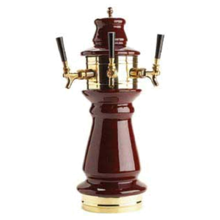 The Micro Matic CT500-3 Vienna Draft Beer Tower Countertop is a precision-engineered solution designed for both functionality and elegance in beverage dispensing. It features a 7-1/2" diameter and a total height of 25", making it a compact yet impactful addition to any establishment aiming to serve draft beer with style. This tower is air-cooled, ensuring that beverages are kept at the optimal temperature from keg to glass. With three brass-body faucets, each with a clearance of 15-1/8", it provides ample space for pouring and accommodates various glass sizes. The brass construction ensures durability and a classic appearance, although handles are not included, allowing for customization to suit specific aesthetic preferences. The base of the tower measures 7-3/4" in diameter, providing a stable foundation, while the ceramic tower with a 3-7/8" faucet collar adds a touch of sophistication and enhances its visual appeal. Ideal for bars, restaurants, and brewpubs, the Micro Matic CT500-3 combines robust materials and practical design elements, catering to those who value reliability and style in their draft beer systems.