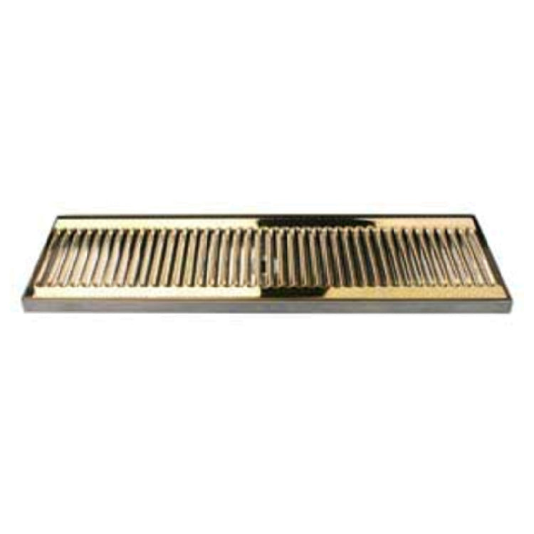 Micro Matic USA, DP-120DSSPVD-20-P, Surface Mount Drip Tray, 20"W x 5"D x 3/4"H, with 3-1/2" drain nipple, stainless steel tray with perforated PVD brass grid