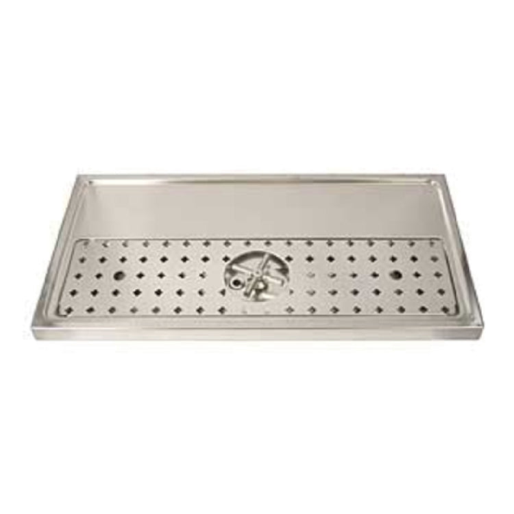 The Micro Matic DP-1606 Platform Drip Tray With Glass Rinser Surface Mount is a precision-engineered solution for beverage dispensing systems, specifically designed to enhance the efficiency and cleanliness of bar or brewery operations. Measuring 31-1/2 inches in width and 15-3/4 inches in depth, this drip tray accommodates 3-5 faucets, making it an adaptable choice for various dispensing configurations. It features a removable perforated screen that facilitates straightforward cleaning and maintenance. The 1/2-inch water inlet and 3/4-inch drain ensure efficient water management, particularly crucial for high-volume service environments. Additionally, the tray provides a 29-1/2 inch by 6 inch area for tower mounting, allowing seamless integration with existing systems. Constructed from polished stainless steel, it not only offers a sleek, modern aesthetic but also promises durability and resistance to corrosion. Supported by a plywood under structure, the unit combines strength with style, making it a reliable component in high-traffic settings. This platform drip tray with glass rinser is an essential asset for establishments aiming to maintain high standards of hygiene and operational efficiency, serving a wide range of market segments within the beverage service industry.