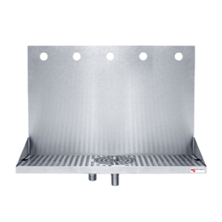 The Micro Matic DP-322LD-5GR Drip Tray Trough is designed for seamless integration in professional bar and beverage service environments. This wall-mounted unit measures 16"W x 6-3/8"D x 14"H, providing an ample drainage area to maintain a clean and efficient workspace. The drip tray features five pre-drilled faucet holes spaced 3 inches on center, allowing for versatile installation of multiple faucets, ideal for establishments with diverse beverage offerings. Its integral glass rinser enhances convenience, ensuring quick and efficient cleaning of glassware. The tray includes a perforated stainless steel screen, facilitating debris separation while maintaining a sleek appearance. The unit is fitted with a 1/2" NPT drain for efficient liquid management. Constructed from durable stainless steel, this drip tray ensures longevity and resistance to corrosion, making it suitable for high-volume environments. Ideal for breweries, bars, and restaurants, the Micro Matic DP-322LD-5GR Drip Tray Trough combines functionality and durability to support a streamlined beverage service operation.