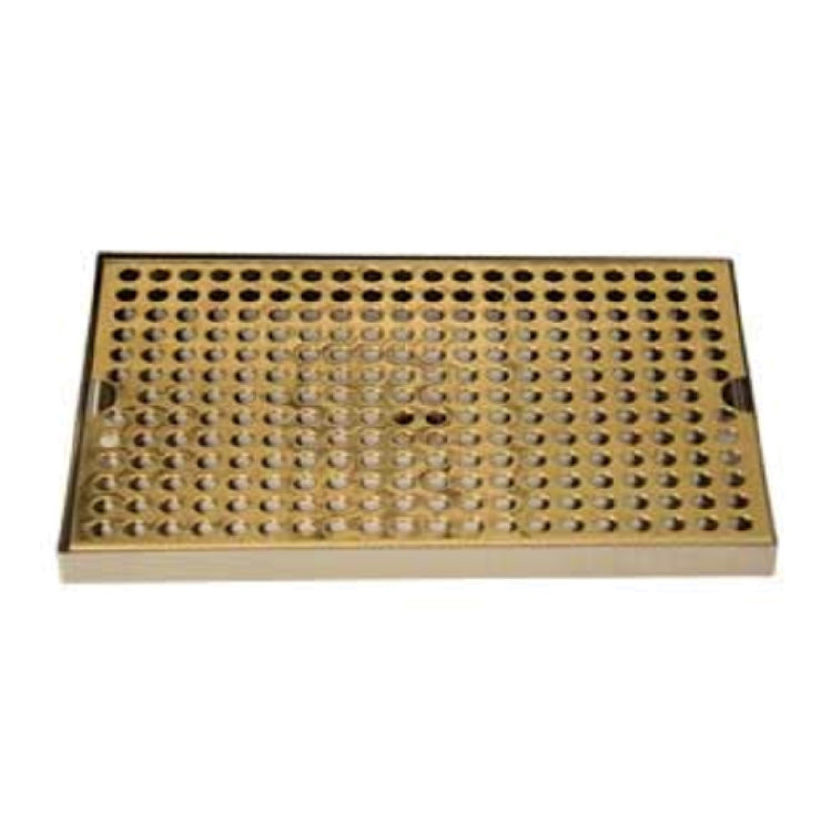 The Micro Matic DP-820DSSPVD-12 Drip Tray Trough is an expertly crafted surface mount solution tailored for precise beverage dispensing operations. Measuring 12 inches in width and 8 inches in depth, this tray provides ample space for capturing spills in busy service environments. Its stainless steel construction ensures durability and resistance to corrosion, making it ideal for long-term use in demanding settings. The tray features a perforated PVD brass screen that enhances its aesthetic appeal while allowing efficient liquid drainage. The inclusion of a 5/8 inch O.D. drain facilitates straightforward waste management, supporting seamless operation across various service scenarios. This product is particularly valuable for bars, breweries, and restaurants where maintaining cleanliness and efficiency is paramount. By combining robust materials with practical design elements, the Micro Matic DP-820DSSPVD-12 stands out as a reliable choice for professionals seeking to optimize their beverage service areas. Its design not only aids in maintaining hygienic conditions but also contributes to the overall operational efficiency in high-volume service environments.