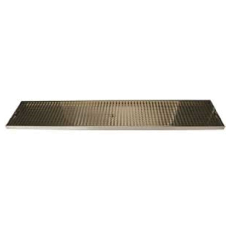 The Micro Matic DP-820DSSPVD-39 Drip Tray Trough is a surface mount unit measuring 39 inches in width and 8 inches in depth, making it an ideal solution for efficiently managing liquid waste in commercial bar or restaurant settings. Its perforated PVD brass screen is designed to provide an effective and aesthetically pleasing cover for the tray, allowing liquids to pass through while trapping larger debris. The drip tray features a 5/8-inch O.D. drain, ensuring quick and reliable drainage, minimizing the risk of overflow, and maintaining a clean work area. Constructed from durable stainless steel, this drip tray is built to withstand the rigors of high-volume environments, offering both longevity and resistance to corrosion. The combination of its substantial width and depth enables this drip tray to cater to businesses requiring robust waste management solutions, fitting seamlessly into existing setups without compromising on style or functionality. The Micro Matic DP-820DSSPVD-39 is especially suitable for diverse market segments, including high-end bars, busy restaurants, and breweries, where efficiency, durability, and hygiene are paramount. The sleek design and high-quality materials underscore its capability to deliver reliable performance while complementing the aesthetics of premium service environments.