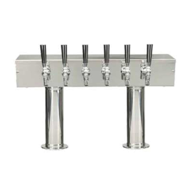 The Micro Matic DPT36PSS-PL Pro-Line Direct Draw Double Pedestal Conversion Tower 24" Box is a versatile and premium quality solution for establishments requiring efficient beverage dispensing. Engineered with precision, this tower features two 3" diameter columns and includes six faucets, allowing for a wide array of draft choices; however, handles are not included. It boasts an 11-5/8" faucet clearance and a 3" on-center spacing, providing ample room for convenient operation. Crafted from polished stainless steel, this robust unit ensures durability and a sleek appearance, suitable for high-end bars or busy restaurants. The tower is both insulated and air-cooled, maintaining optimal temperature control for beverages, which is crucial for preserving taste and quality. Included with the package are mounting gaskets and hardware, ensuring easy installation, while the 5 ft long brewery-approved beer hoses provide a secure and efficient flow of liquids, fitting models MDD58, MDD58S, MDD68, MDD68S, MDD78, MDD78S, MDD94, and MDD94S. This product is tailored for businesses seeking reliability and excellence in their beverage dispensing systems, making it a strategic choice for enhancing operational efficiency and customer satisfaction.
