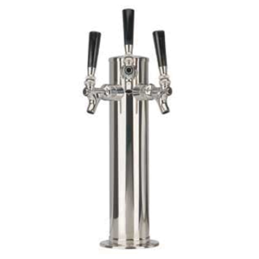 The Micro Matic DS-133-PSS Column Draft Beer Tower Countertop 3"- Dia. X 12"-H is a sophisticated beverage dispensing solution engineered for seamless operation in commercial settings. With a robust 3"- diameter and a 12"- height, this tower is designed to efficiently manage beverage flow while maintaining a compact countertop footprint. The unit features three chrome-plated brass faucets, which provide durability and style, though handles are not included, allowing for customization to match your existing décor. It boasts a 9-5/8"- faucet clearance for ease of use, complemented by a 10-1/4"- center faucet for balanced distribution. The 4-1/2"- diameter base ensures stability during operation. Polished stainless steel finish not only enhances its aesthetic appeal but also contributes to its longevity by resisting corrosion. Chrome-plated bonnet and collar add an extra touch of elegance, aligning with the high standards expected in professional settings. This air-cooled tower includes mounting gaskets and hardware, facilitating straightforward installation. Ideal for bars, restaurants, and event venues, the Micro Matic DS-133-PSS combines functional design with enduring quality, offering a reliable solution tailored to meet the demands of high-volume, fast-paced environments where efficient draft beer service is crucial.