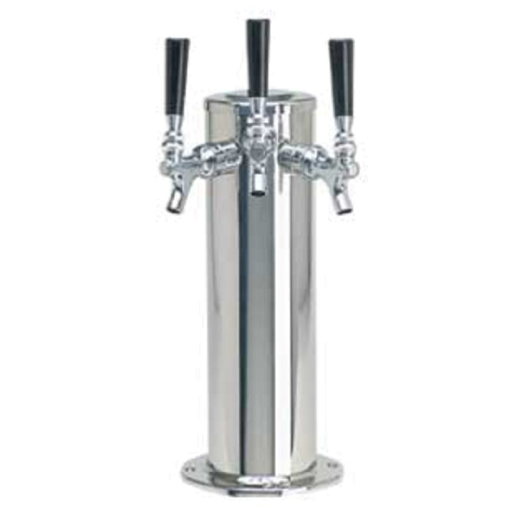 The Micro Matic DS-143-PSS Column Draft Beer Tower is a countertop solution designed for seamless beer dispensing with precise technical specifications. Standing at 13-3/4 inches high with a 4-inch diameter, this draft beer tower is engineered for optimal performance in various commercial environments. It features air-cooled technology, ensuring that beer is maintained at an ideal temperature from keg to faucet. The tower is equipped with three chrome-plated brass faucets, although handles are not included, providing flexibility for customization. Each faucet offers a clearance of 10-3/8 inches, with the center faucet positioned at 11-1/8 inches, allowing for easy glass placement and filling. The tower stands on a 6-inch diameter base, ensuring stability and durability during operation. A polished stainless steel finish, complemented by a chrome-plated bonnet and collar, gives the unit a sleek and professional appearance that fits seamlessly into any bar setting. Installation is straightforward with mounting gaskets and hardware provided, making it a convenient choice for new setups or upgrading existing systems. The Micro Matic DS-143-PSS is a versatile draft beer tower, catering to the needs of bars, restaurants, and breweries seeking reliable and aesthetically pleasing dispensing equipment.