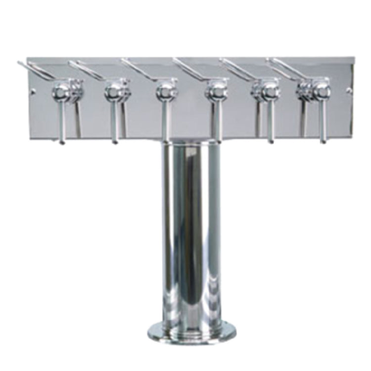 The Micro Matic DS-356-PSS-W T Style Wine Font - countertop, stands as a precision-engineered solution for wine dispensing, measuring 20" wide, 7" deep, and 18-9/16" high. This unit is air-cooled, making it suitable for maintaining optimum wine temperatures. It features six polished 304 stainless steel side pull faucets, which are not equipped with medallion holders, spaced at 3" on center to accommodate various serving needs. The device boasts an 11-5/8" faucet clearance, enhancing accessibility during service. Additionally, it is designed with a robust 4" diameter column and a 6" diameter base for stability. The 304 stainless steel shanks ensure durability and resistance to corrosion, which is further complemented by a polished stainless steel finish for an aesthetically pleasing appearance. Included are 1/4" I.D. GEN-X product lines, alongside mounting gaskets and hardware, facilitating a seamless installation process. This wine font is a strategic asset across different market segments within the beverage industry, offering a blend of functionality and sophistication that supports both commercial and artisanal wine dispensing environments.