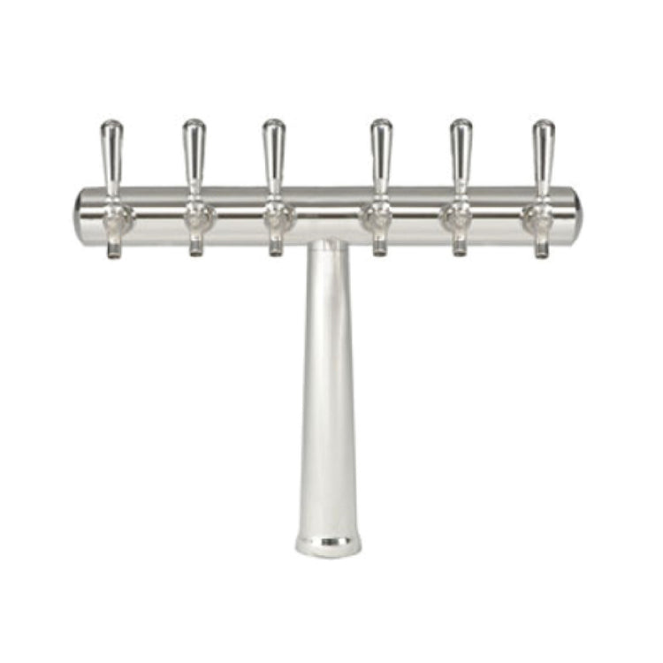 The Micro Matic HAVANA6-C Havana Draft Beer Tower is a sophisticated countertop unit designed for optimal beverage dispensing, measuring 23-3/4 inches in width and 17 inches in height. This meticulously engineered beer tower features a glycol-cooled system, enhancing the beverage dispensing process by maintaining optimal temperatures. It is equipped with six stainless steel faucets, allowing for a diverse selection of beverages to be served simultaneously, although handles are not included. The base of the tower measures 3-1/8 inches in width, ensuring a stable setup on any countertop. The product lines are constructed from durable stainless steel, while the coolant lines are made from copper, ensuring long-lasting performance and reliability. For added convenience, mounting gaskets and hardware are included, streamlining the installation process. The tower boasts a sleek chrome finish, combining functionality with a modern aesthetic that enhances any bar or restaurant environment. This draft beer tower is designed to meet the needs of commercial establishments, providing a reliable and efficient solution for serving beverages. Its robust construction and elegant design make it a versatile addition to any venue looking to enhance their beverage service capabilities, catering to diverse market segments within the hospitality and entertainment industries.