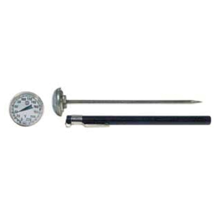The Micro Matic JE-3215 Dial Thermometer is a precision tool designed for exact temperature measurement in various professional settings. With a compact 1-inch face, this thermometer offers a temperature range from 0-220°F, making it versatile for applications requiring precise temperature control. The inclusion of a protective case ensures durability and ease of transport, safeguarding the thermometer in demanding environments. This design is particularly beneficial for industries such as food and beverage, where maintaining accurate temperatures is crucial for safety and quality control. The JE-3215's straightforward design enables quick readings, and its reliable measurement capability supports compliance with industry standards. Its small size makes it an excellent choice for use in tight spaces or for on-the-go professionals who need reliable temperature readings. The Micro Matic JE-3215 Dial Thermometer is a trusted companion for chefs, brewers, and laboratory technicians, providing a dependable tool that balances accuracy and convenience. Its robust build and clear display ensure that users can monitor temperatures with confidence, underscoring its value in maintaining optimal conditions across various applications.
