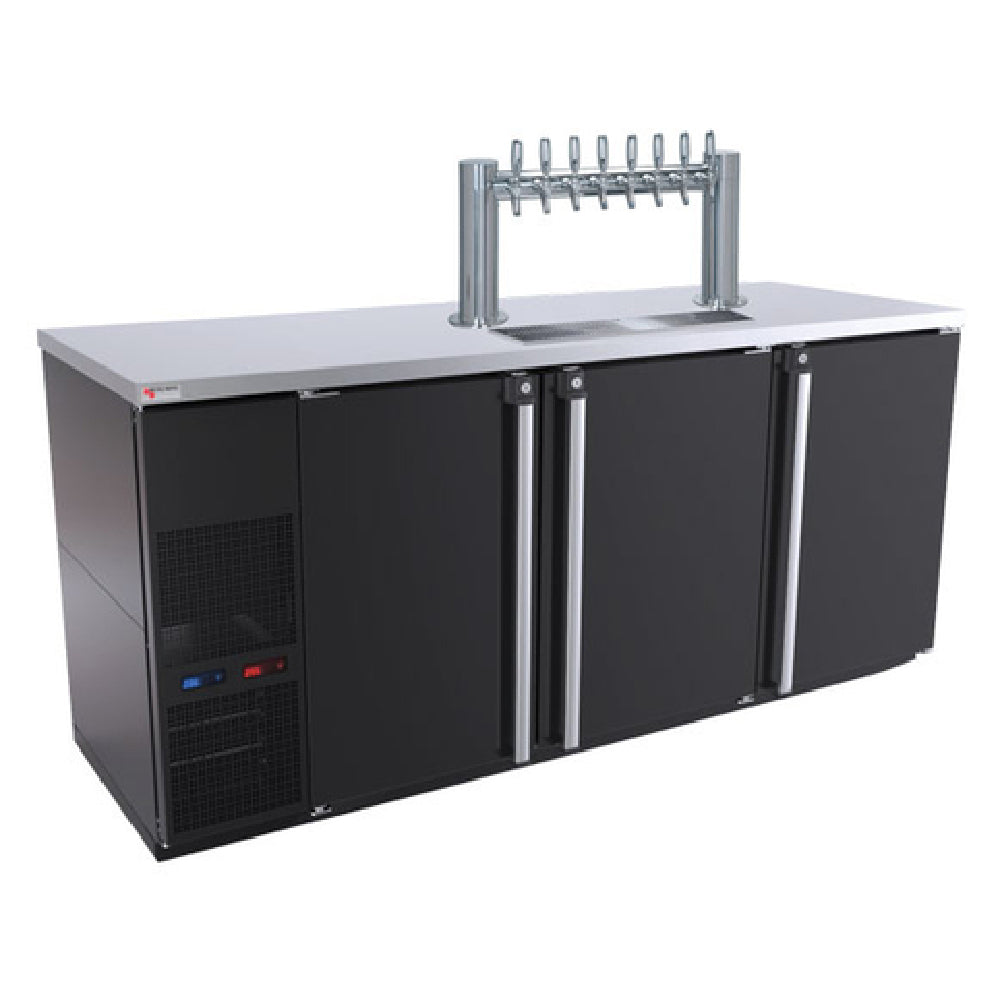 - Holds up to (10) 1/6 slim barrel kegs in cold side