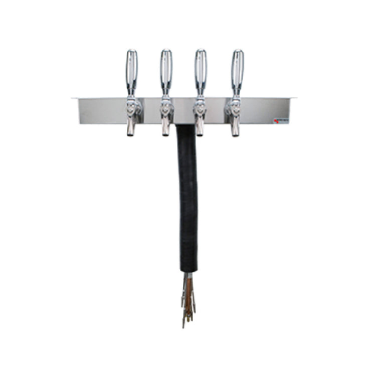 The Micro Matic UCM-4-SSKR Draft Beer Dispenser Underbar 21-1/2"W x 2-1/2"H is a sophisticated solution for establishments seeking precision in beer dispensing. This unit is glycol-cooled, featuring the Kool-Rite™ integrated module that ensures optimal temperature control. This draft beer dispenser is equipped with four 304 stainless steel faucets (handles not included), designed with a 3" OC configuration for efficient dispensing. The inclusion of 304 stainless steel product lines and leak-proof shanks guarantees durability and a reliable performance. Copper coolant lines are incorporated, enhancing the cooling efficiency of the system. The dispenser includes integrated mounting flanges, offering ease of installation. Its exterior boasts a brushed stainless steel finish, providing a sleek, professional appearance ideal for any bar setting. The dimensions, 21-1/2" in width and 2-1/2" in height, allow for versatile underbar placement, making it suitable for diverse venues, from small pubs to larger entertainment spaces. This product exemplifies quality construction and thoughtful design, catering to the needs of various market segments within the hospitality industry, and ensuring a first-rate beer serving experience.