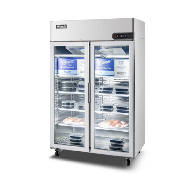 Migali Industries, C-2FG-HC, Competitor Series® Freezer, reach-in, (2) section, 51.7" W, 43.2 cu. ft. capacity, top mount self-contained refrigeration system, (2) glass door (locking), (6) shelves, LED interior lighting, digital temperature controller/display (-10° to +0°F), forced air cooling, stainless steel exterior & interior, (4) 4" casters (2 locking), R290 Hydrocarbon refrigerant, 3/4 HP, 115v/60/1-ph, 8.6 amps, NEMA 5-15P, cETLus, ETL-Sanitation, Migali® Plant-A-Tree Pledge: Migali® pledges to plant a tree for every product sold in partnership with the Earth Day Network