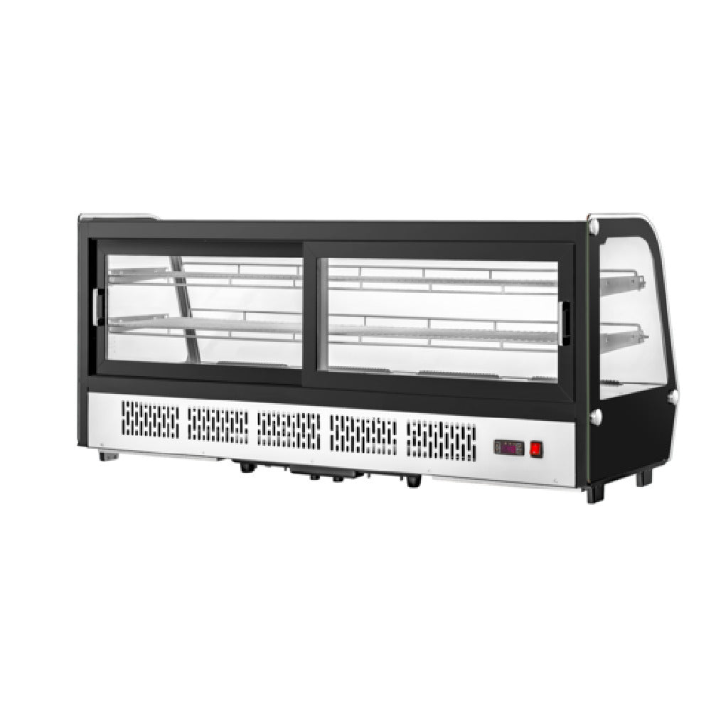 Migali Industries, C-88CTC-60, Competitor Series® Refrigerated Display Case Countertop, 60"W, 8.8 cu. ft., auto-defrost system, double-paned tempered curved display glass, (2) chrome epoxy-plated shelves, front, sides & top glass, forced-air refrigeration system, LED interior lighting, sliding glass doors, digital temperature controller & temperature read-out, bottom mount compressor, ergonomic construction, stainless steel interior & exterior front, glass covered black sides, pre-installed feet, R290 Hydrocarbon refrigerant, 5/9 HP, 3.4 amps, NEMA 5-15P, cETLus, ETL-Sanitation, Migali® Protection Plan: 2 Year Parts & Labor Warranty, 5 Year Compressor Warranty
