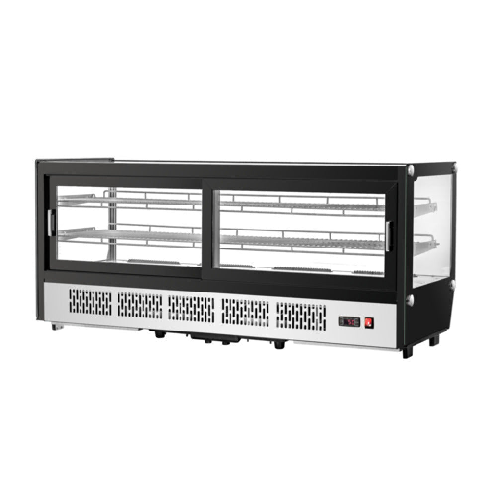 Migali Industries, C-88CTS-60, Competitor Series® Refrigerated Display Case Countertop, 60"W, 8.8 cu. ft., auto-defrost system, double-paned tempered straight display glass, (2) chrome epoxy-plated shelves, front, sides & top glass, forced-air refrigeration system, LED interior lighting, sliding glass doors, digital temperature controller & temperature read-out, bottom mount compressor, ergonomic construction, stainless steel interior & exterior front, glass covered black sides, pre-installed feet, R290 Hydrocarbon refrigerant, 5/9 HP, 3.4 amps, NEMA 5-15P, cETLus, ETL-Sanitation, Migali® Protection Plan: 2 Year Parts & Labor Warranty, 5 Year Compressor Warranty