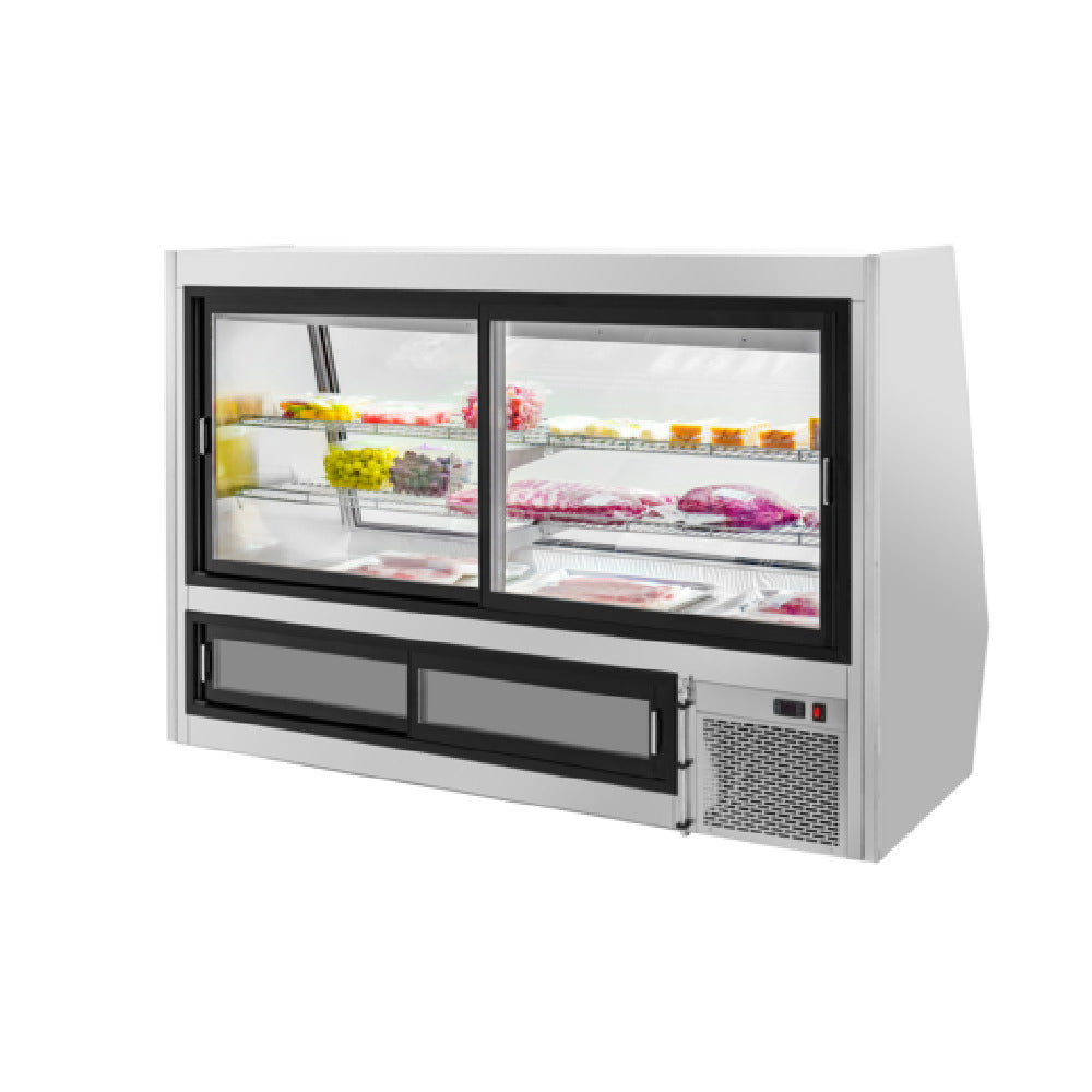 Migali Industries, C-DS-6, Competitor Series® Refrigerated Display Case Deli, 71.8"W x 55.4”H, 34.5 cu. ft. capacity, double-duty configuration with a gravity coil in the top, double-paned tempered straight display glass, sliding glass doors, (2) chrome-plated shelves, LED interior lighting, ergonomic construction, digital temperature controller & temperature, auto-defrost system, side mount compressor, stainless steel exterior & interior, anodized aluminum extruded frame, pre-installed casters & leveling feet, R290 Hydrocarbon refrigerant, 1-1/9 HP, 3.9 amps, NEMA 5-15P, cETLus, ETL-Sanitation, Migali® Protection Plan: 2 Year Parts & Labor Warranty, 5 Year Compressor Warranty