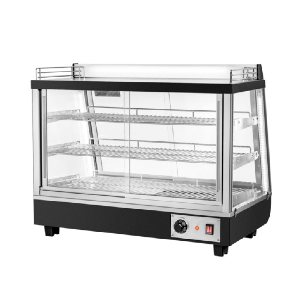 Migali Industries, C-HCT36-S, Competitor Series® Heated Display Case Countertop, 33.5"W, 4.8 cu. ft., dial temperature controller with mechanical temperature read-out, LED interior lighting, stainless steel interior & exterior front, glass covered black sides, front, sides & top glass, sliding glass doors, (3) gray epoxy-plated shelves, pre-installed feet, removable water pan, R290 Hydrocarbon refrigerant, 12.6 amps, NEMA 5-15P, cETLus, ETL-Sanitation, Migali® Protection Plan: 2 Year Parts & Labor Warranty, 5 Year Compressor Warranty