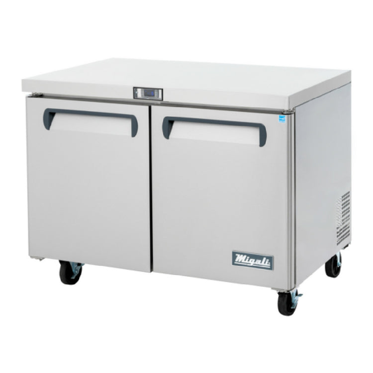 Migali Industries, C-U48F-HC, Competitor Series® Undercounter Freezer, reach-in, two-section, 48.2" W, 12.0 cu. ft. capacity, rear mount self-contained refrigeration system, (2) solid hinged doors, (2) shelves, digital temperature controller/display (-7° to +3°F), forced air cooling, stainless steel top, exterior & interior, (4) 6" casters (2 locking), R290 Hydrocarbon refrigerant, 1/3 HP, 115v/60/1-ph, 6.5 amps, NEMA 5-15P, cETLus, ETL-Sanitation, Migali® Plant-A-Tree Pledge: Migali® pledges to plant a tree for every product sold in partnership with the Earth Day Network