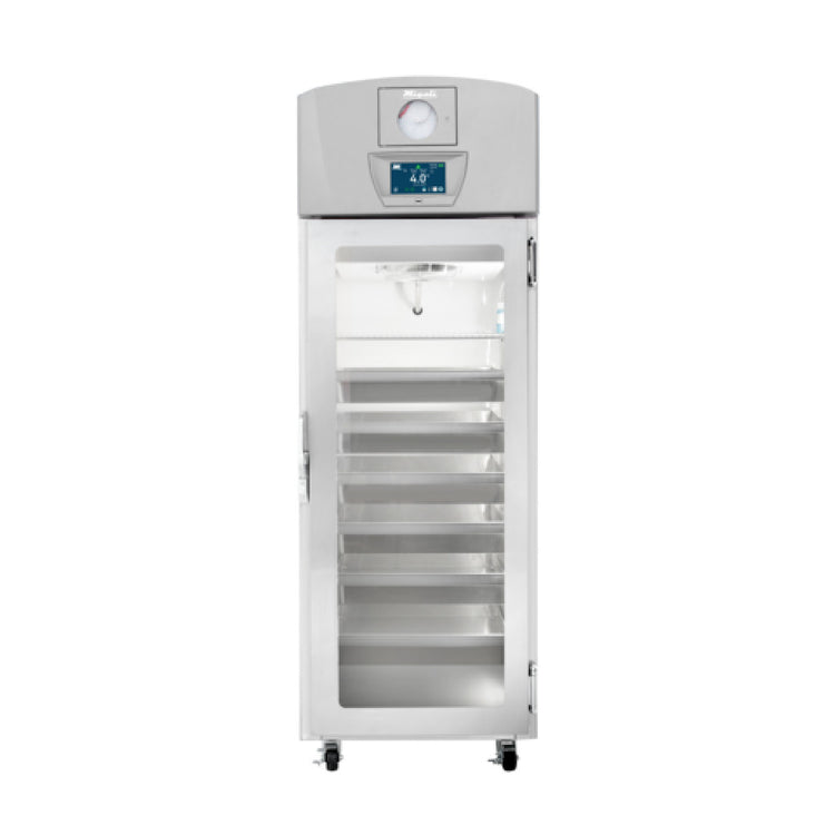 Migali Industries, EVOX-1RG-C, Medical-Grade Refrigerator, 20.2 cu. ft. capacity, single glass door, auto-defrost, +2°C (~) +8°C, touch keypad, LCD screen, refrigeration system, (6) poweder coated shelves, (4) casters (2 locking, 2 non-locking), 304 series stainless steel exterior, white powder coated aluminium interior, R-134a refrigerant, 115v/60/1-ph, NEMA 5-15P, cETLus, ADA Compliant, Made in USA, 2 Year Parts Warranty, 1 year Labor Warranty, 7 Year Compressor Warranty