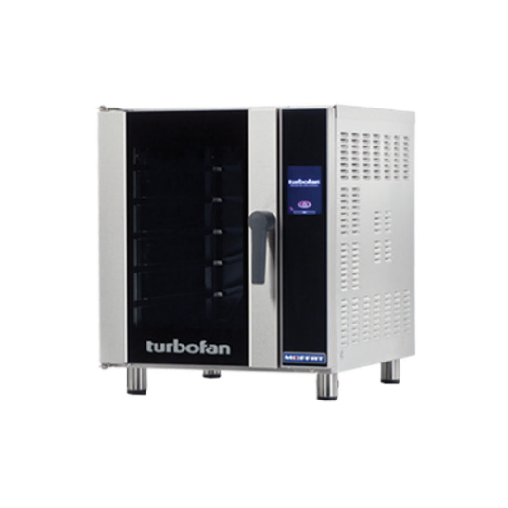 The Moffat E33T5_208 Turbofan® Convection Oven Electric is a robust culinary appliance with a capacity for five half-size sheet pans. Engineered for precision and efficiency, this convection oven boasts a 3-1/3" tray spacing, accommodating diverse cooking needs. It integrates advanced touch screen control, providing seamless operation across a broad temperature range of 140 - 500°F. The oven is equipped with up to five customizable cooking stages, catering to a variety of culinary techniques, and features a versatile 2-speed fan that enhances convection effectiveness. The porcelain enameled oven chamber ensures durability and easy cleaning, while dual halogen oven lamps guarantee optimal visibility. With a USB port, this convection oven facilitates effortless software updates and recipe uploads. The exterior, crafted from stainless steel with adjustable anti-skid feet, underscores both stability and resilience. With a substantial power of 5.8kW, the Moffat E33T5_208 is cETLus and NSF certified, ensuring it meets stringent quality and safety standards. This convection oven is an ideal investment for restaurants, bakeries, and other food service establishments seeking reliable performance and innovative cooking technology.