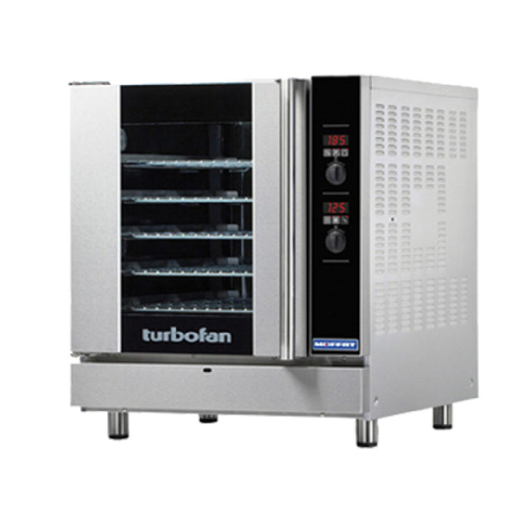 The Moffat G32D5_NAT Turbofan® Convection Oven Gas Full-size is a high-performance single-deck oven, expertly engineered for demanding culinary environments. This precision instrument features a 30-inch assembled height and operates on a gas system with an impressive 33,000 BTU output, ensuring consistent and robust heating. Tailored for versatility, the oven accommodates up to five full-size sheet pans, with a 3-1/3-inch tray spacing to optimize airflow and cooking efficiency. Its digital controls offer a wide temperature range from 140 to 500°F, catering to diverse cooking requirements. The unit includes a 1-hour cook cycle timer and a 3-hour hold timer, allowing chefs to manage cooking processes meticulously. A water injection system further enhances cooking results by maintaining optimal moisture levels. Constructed with a durable stainless steel exterior and a porcelain interior, the oven combines aesthetic appeal with durability. The inclusion of a glass door facilitates easy monitoring of the cooking process. Certified by cETLus, CSA, and NSF, the Moffat G32D5_NAT Turbofan® Convection Oven Gas Full-size stands as a reliable and efficient choice for professional kitchens, bringing together advanced technology and robust construction for superior culinary performance.