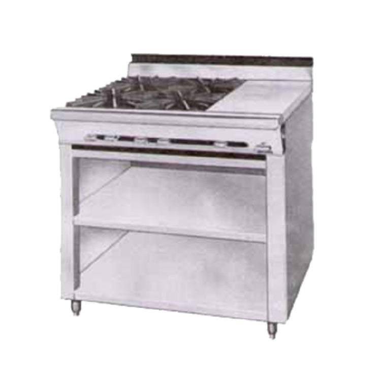 - 36" wide with 4 open burners, 30,000 BTU each