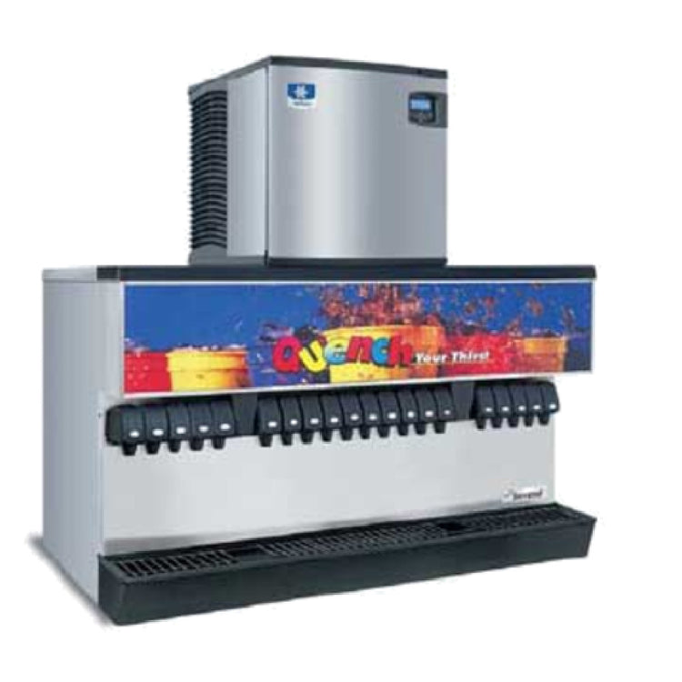 The Multiplex 2706231 MDH-402 Ice & Beverage Dispenser Countertop Ambient Unit is an efficient solution for businesses requiring a reliable ice and beverage dispensing system. This countertop unit boasts a substantial 400 lbs. ice capacity, making it suitable for high-demand environments. Equipped with two ice chutes, it allows for simultaneous access to ice, enhancing service speed. The unit features twenty Flomatic 464GP sanitary lever valves, ensuring hygienic and convenient beverage dispensing. A 12-inch lighted merchandiser with "Quench Your Thirst" graphics provides an attractive presentation, enticing customers to refresh themselves. For ease of maintenance, a drain kit is included. Operating on 120v/60/1-ph with a 2.8 amp requirement, this dispenser is both cUL and UL listed, and NSF certified, confirming its adherence to rigorous safety and sanitation standards. Although not configured for extended merchandising, the Multiplex 2706231 MDH-402 unit delivers exceptional performance and reliability for restaurants, cafes, and self-service areas where quick and efficient service is paramount.