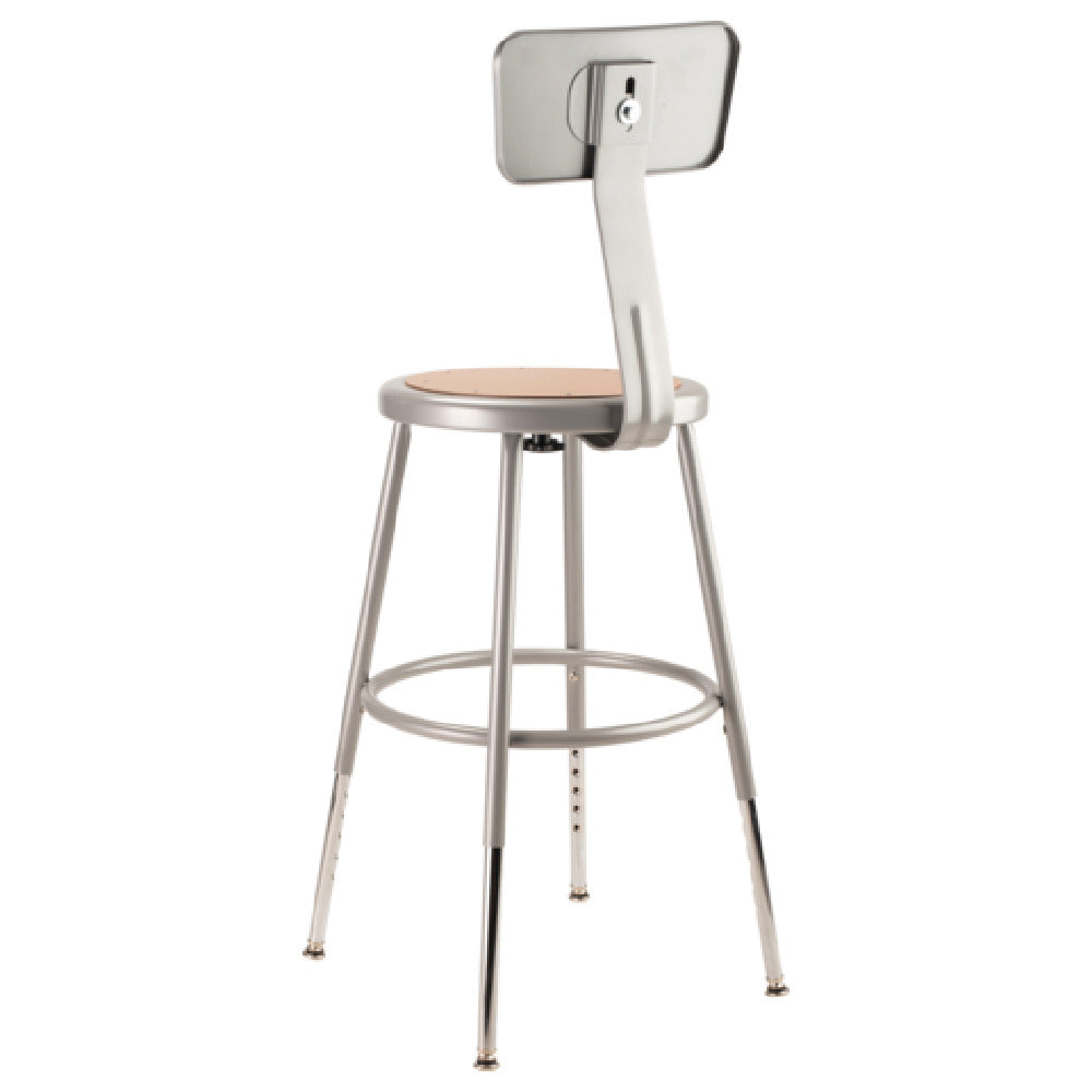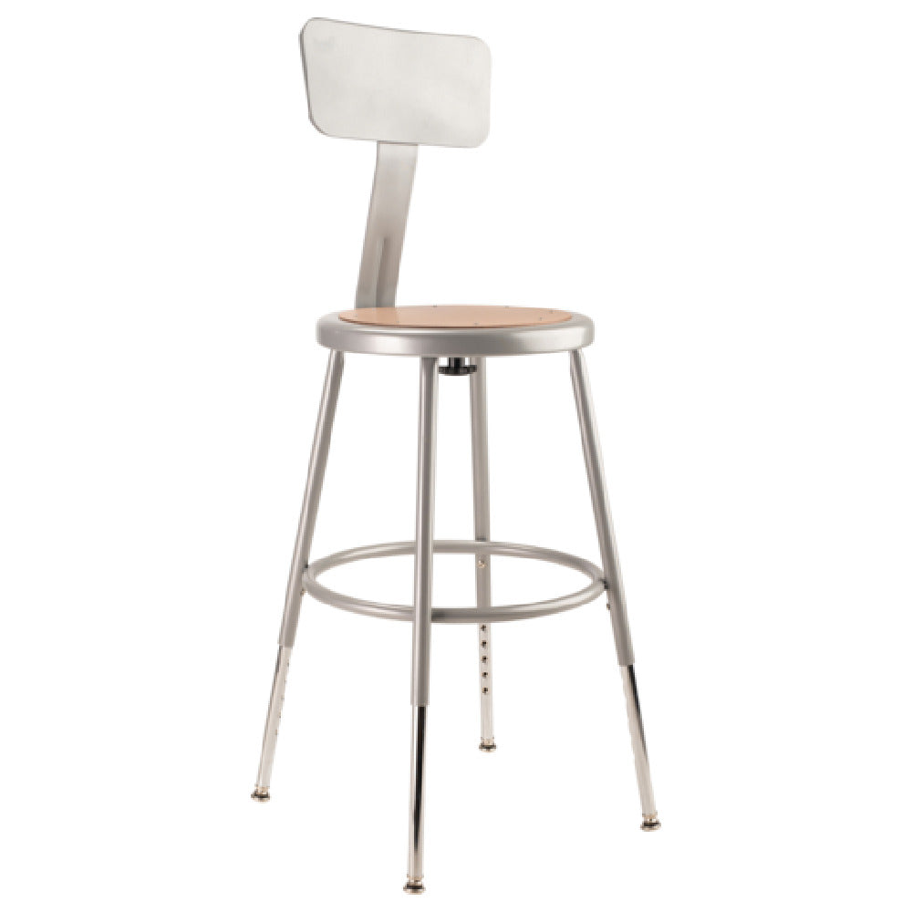 National Public Seating, 6218HB, NPS® Heavy Duty Steel Stool with Backrest, 19"-27", Height Adjustable, 14" round seat, 7/8" O.D. 18-gauge steel frame, 5/8" O.D. foot ring, ANSI/BIFMA, MAS Green Certified