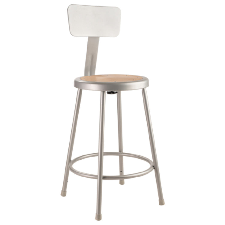 National Public Seating, 6224B, NPS® Heavy Duty Steel Stool with Backrest, 24", 14" round seat, 7/8" O.D. 18-gauge steel frame, 5/8" O.D. foot ring, ANSI/BIFMA, MAS Green Certified