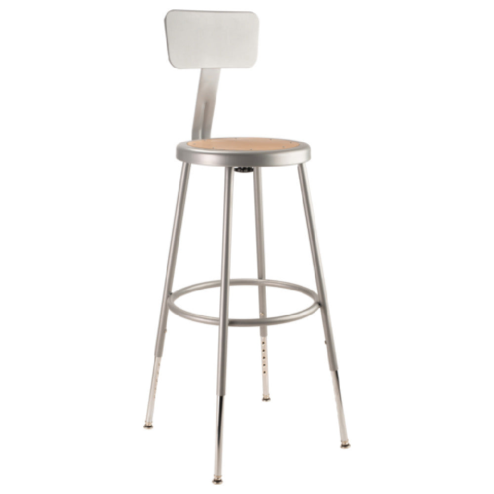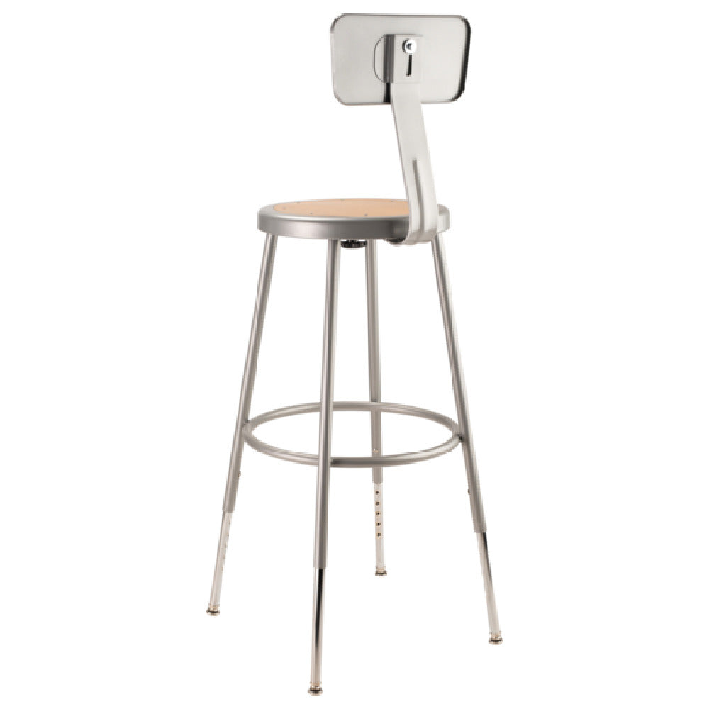 National Public Seating, 6224HB, NPS® Heavy Duty Steel Stool with Backrest, 25"-33", Height Adjustable, 14" round seat, 7/8" O.D. 18-gauge steel frame, 5/8" O.D. foot ring, ANSI/BIFMA, MAS Green Certified