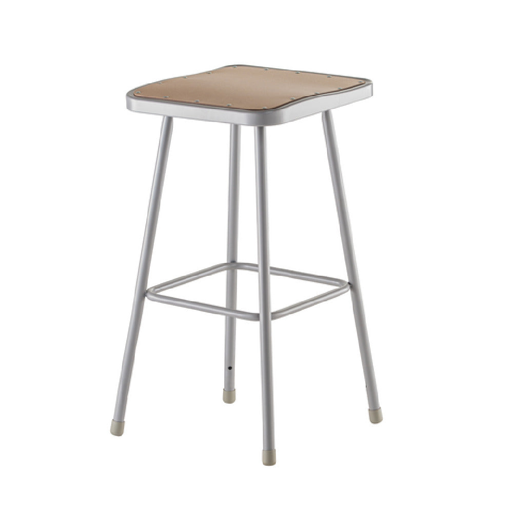The National Public Seating 6330 NPS® Steel Stool is a robust seating solution designed to support up to 300 pounds, making it a reliable choice for educational, industrial, and commercial environments. Standing at 30 inches high, this stool features a square hardboard seat secured with 16 rivets, ensuring durability and stability. The welded 5/8-inch O.D. foot ring provides additional support, while the 7/8-inch O.D. 18-gauge steel frame offers strength and longevity. This stool meets ANSI/BIFMA standards, reflecting its adherence to quality and safety benchmarks. Furthermore, it is MAS Green Certified, highlighting its environmentally friendly design. The National Public Seating 6330 NPS® Steel Stool is perfectly suited for art studios, science labs, and workshop settings where robust, dependable seating is essential. Its combination of high weight capacity, sturdy construction, and certifications make it a versatile addition to various industry segments, offering both functionality and peace of mind. The stool's thoughtful engineering ensures it can withstand the demands of high-traffic environments while maintaining its structural integrity over time.