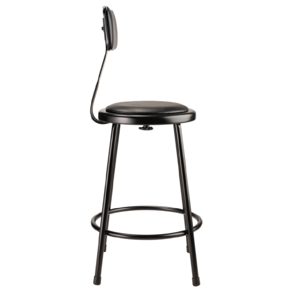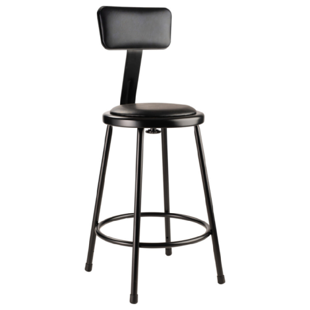 National Public Seating, 6424B-10, NPS® Heavy Duty Steel Stool with Backrest, 24", Black, 14" round seat with 11-1/2" dia. vinyl padding, 7/8" O.D. 18-gauge steel frame, 5/8" O.D. foot ring, ANSI/BIFMA, MAS Green Certified