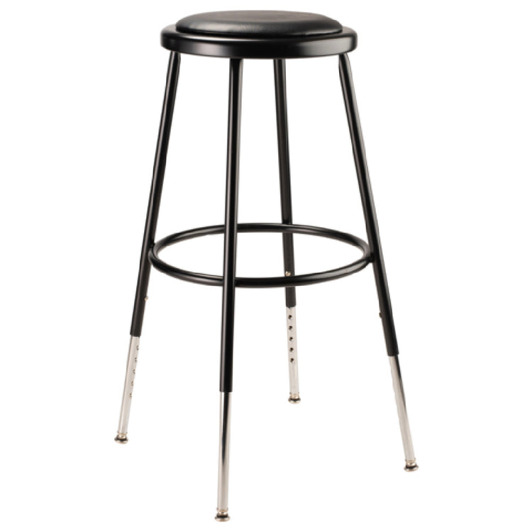 National Public Seating, 6424H-10, NPS® Heavy Duty Vinyl Padded Steel Stool, 25"-33", Height Adjustable, Black, 14" round seat with 11-1/2" dia. vinyl padding, 7/8" O.D. 18-gauge steel frame, 5/8" O.D. foot ring, ANSI/BIFMA, MAS Green Certified