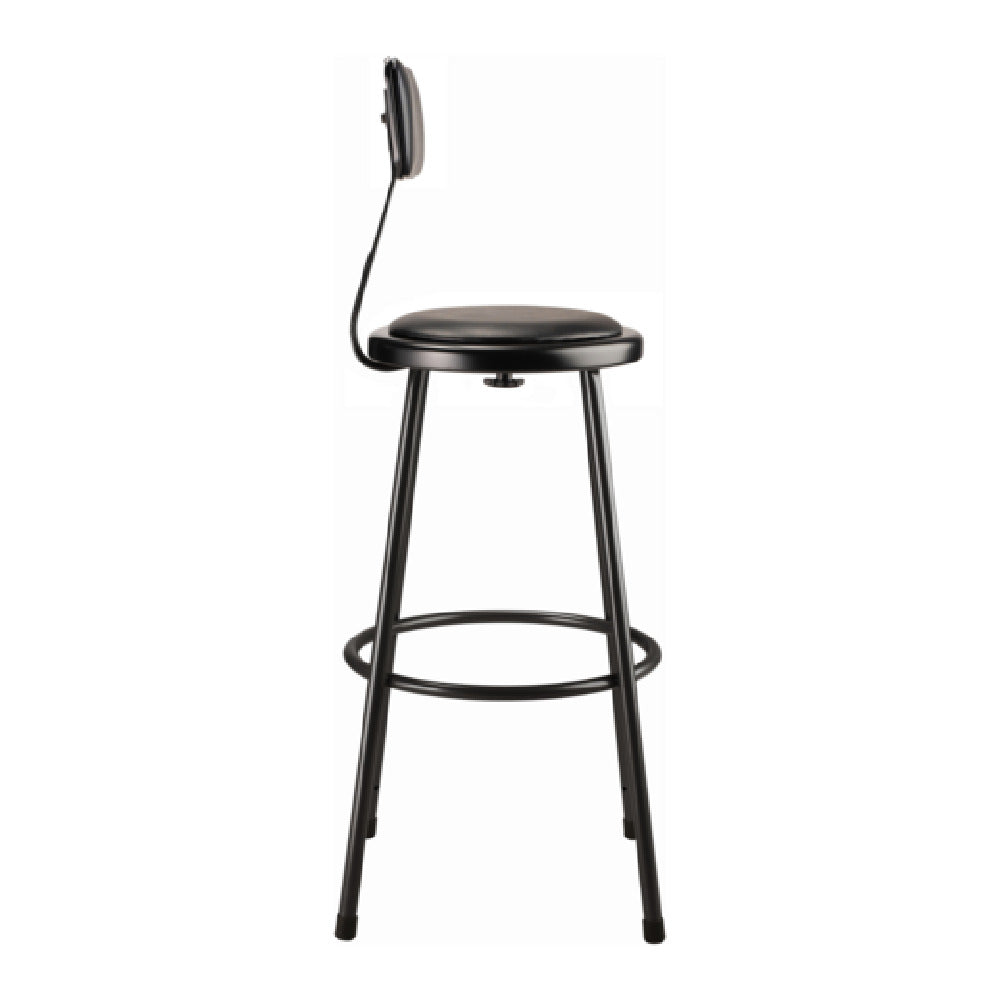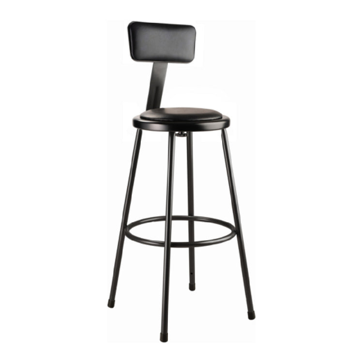 National Public Seating, 6430B-10, NPS® Heavy Duty Steel Stool with Backrest, 30", Black, 14" round seat with 11-1/2" dia. vinyl padding, 7/8" O.D. 18-gauge steel frame, 5/8" O.D. foot ring, ANSI/BIFMA, MAS Green Certified