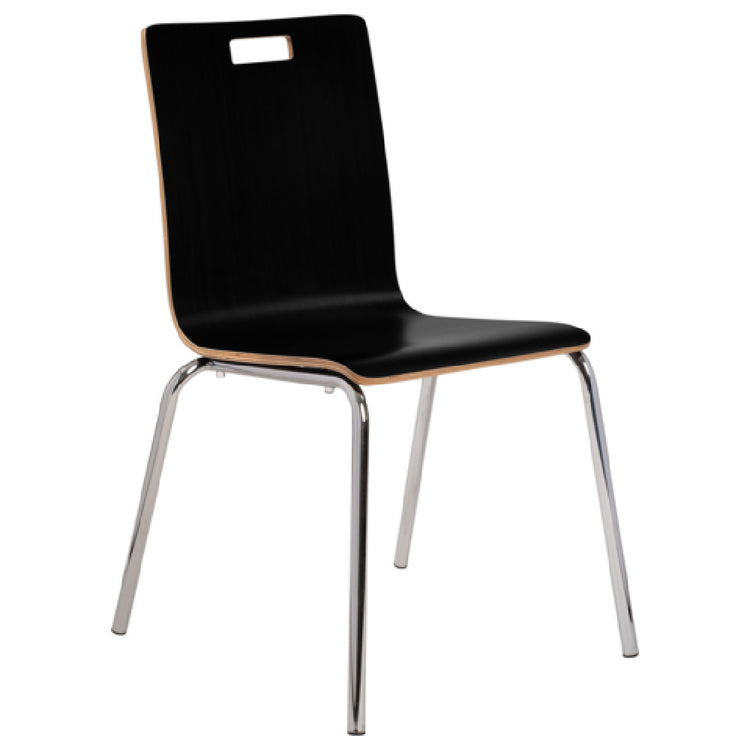 National Public Seating, BCC23, NPS® Bushwick Café Chair, 500 lb. weight capacity, 1/2" think 8 layer bent HPL laminated plywood back and seat, contoured waterfall edge, side handle on back, 7/8" 16 gauge chromed steel tubing, welded foot ring, non-marring polypropylene glides, ANSI/BIFMA, MAS Green Certified (Quick-Ship)
