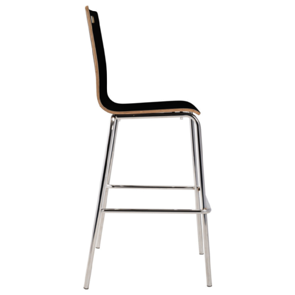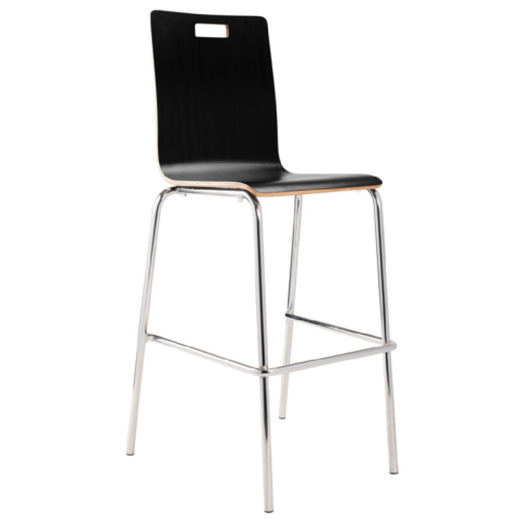National Public Seating, BCS23, NPS® Bushwick Stack Café Barstool, 500 lb. weight capacity, 1/2" think 8 layer bent HPL laminated plywood back and seat, contoured waterfall edge, side handle on back, 7/8" 16 gauge chromed steel tubing, welded foot ring, non-marring polypropylene glides, ANSI/BIFMA, MAS Green Certified (Quick-Ship)