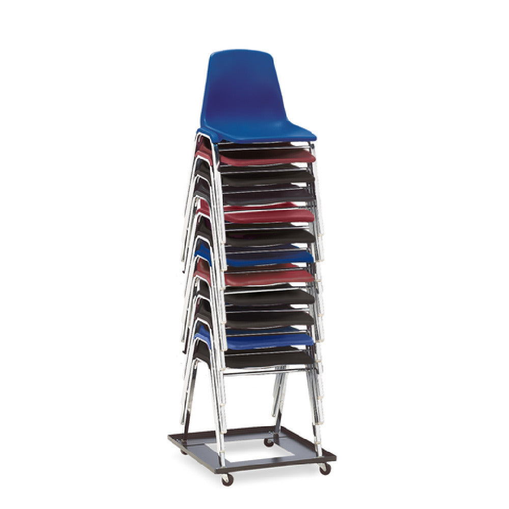 The National Public Seating DY81 NPS® Stacking Chair Dolly holds 8 to 10 stacking chairs, specifically designed for Series 9100 chairs, providing a practical and efficient solution for chair storage and mobility needs across various institutional and commercial settings. This robust chair dolly is engineered to accommodate a considerable number of chairs, making it an indispensable asset for venues that require frequent reconfiguration of seating arrangements, such as schools, conference centers, and event spaces. Its design ensures that chairs can be stacked securely, facilitating easy transportation and storage without compromising on space efficiency. The DY81 dolly’s construction is tailored to meet the demands of heavy usage environments, ensuring durability and longevity. Its compatibility with Series 9100 chairs highlights its tailored design, offering a precise fit and maximum stability during transport. The National Public Seating DY81 NPS® Stacking Chair Dolly represents a specialized tool for enhancing operational efficiency in environments where managing large volumes of seating is crucial, supporting both logistical convenience and operational flow. With its emphasis on capacity and compatibility, this chair dolly is a strategic investment for organizations aiming to streamline their seating management processes while ensuring safety and ease of use.