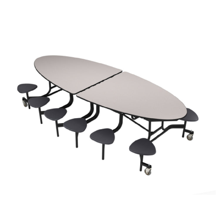 The National Public Seating METS NPS® Mobile Cafeteria Table 12 Stools is a versatile seating solution designed to enhance any cafeteria environment. Measuring 45 inches in width, 121 inches in depth, and 29 inches in height, this elliptical table is constructed from 14-gauge steel, ensuring durability and long-lasting use. Its high-pressure laminate top offers a smooth, easy-to-clean surface, making it ideal for high-traffic areas. The table is MAS2 and UL Certified, underscoring its adherence to stringent safety and quality standards. Furthermore, it can be made ADA compatible, offering accessibility for all users. This mobile cafeteria table is engineered to provide a reliable and functional seating arrangement, accommodating up to 12 individuals with its attached stools. Its robust construction and thoughtful design make it suitable for various segments within the education and hospitality industries, providing a practical and efficient solution for dining spaces. The mobility feature allows for easy reconfiguration and storage, optimizing the use of space in diverse environments.