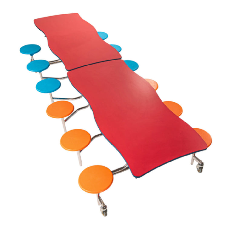 The National Public Seating MSTS10 NPS® Mobile Cafeteria Table 12 Stools is a versatile and durable solution for any cafeteria setting. Featuring a generous dimension of 30"W x 121"D x 29"H, the table accommodates 12 stools, making it ideal for large gatherings or institutional dining. Its construction utilizes 14-gauge steel, ensuring robust durability and longevity, while the high-pressure laminate top provides a resilient and easy-to-clean surface. This table meets MAS2 and UL certification standards, highlighting its adherence to safety and environmental guidelines. The option to make this table ADA compatible underscores its adaptability to diverse user needs, ensuring accessibility for all. The MSTS10 model is designed with mobility in mind, allowing for easy rearrangement and storage, which is particularly beneficial in dynamic environments such as schools, community centers, or corporate cafeterias. The innovative design and structural integrity make it a leading choice for organizations seeking functional and reliable seating solutions in their dining areas.