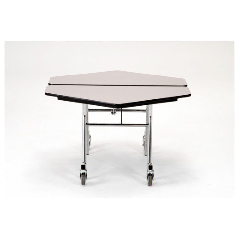 The National Public Seating MT48H NPS® Mobile Cafeteria Table, measuring 48"W x 48"D x 29"H, is a versatile piece engineered for various dining and gathering environments. This table boasts a hexagonal shape, which facilitates communal seating and efficient space utilization. Constructed with 14-gauge steel, it ensures durability and stability, making it suitable for high-traffic areas such as school cafeterias, event halls, and corporate dining spaces. The tabletop is made from high-pressure laminate, providing a resilient surface that withstands daily wear and tear while being easy to clean. Certified by MAS2 and UL, it meets rigorous standards for safety and performance. Furthermore, this table can be made ADA compatible, offering accessibility to all users. Its mobile design allows for easy repositioning and storage, catering to the dynamic needs of any setting. The National Public Seating MT48H NPS® Mobile Cafeteria Table is an ideal solution for those seeking a reliable, adaptable, and user-friendly furniture option in the cafeteria and hospitality sectors, accommodating both functional and accessibility requirements.