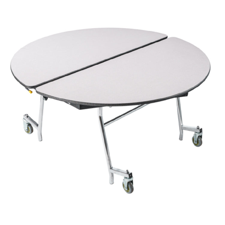 National Public Seating MT72R NPS® Mobile Cafeteria Table is a versatile round table designed for various cafeteria settings. Measuring 72 inches in width, 72 inches in depth, and 29 inches in height, this table is crafted with a 14-gauge steel construction, ensuring robust durability and stability. The high-pressure laminate top provides a smooth and resilient surface, suitable for high-traffic environments, making it ideal for school cafeterias, corporate dining areas, and community centers. Its MAS2, UL Certification underscores its compliance with manufacturing standards, ensuring quality and safety. Additionally, the table can be customized to be ADA compatible, enhancing accessibility for all users. The MT72R model's mobile design allows for easy maneuverability, facilitating quick transitions between different room setups. Its construction and features make it a practical choice for institutions looking to combine functionality with durability in their furniture selections.