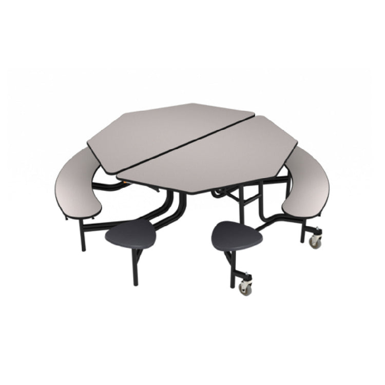The National Public Seating MTO60SB NPS® Mobile Cafeteria Table with Stools and Benches is a versatile and durable solution designed for dynamic cafeteria environments. This table features a unique octagon shape, measuring 60 inches in width, 60 inches in depth, and 29 inches in height, providing ample seating space while facilitating easy communication and interaction among users. Crafted with a robust 14-gauge steel construction, the table ensures long-lasting durability and stability, suitable for high-traffic areas. Its high-pressure laminate top adds an additional layer of resilience, offering a smooth and easy-to-clean surface ideal for educational institutions, corporate dining areas, and public spaces. The table's MAS2 and UL certifications highlight its compliance with stringent quality and safety standards, ensuring reliable performance across various applications. Additionally, the product can be made ADA compatible, expanding its accessibility to accommodate diverse user needs. This combination of features makes the National Public Seating MTO60SB an exceptional choice for schools, cafeterias, and other facilities seeking a practical, durable, and user-friendly seating solution.