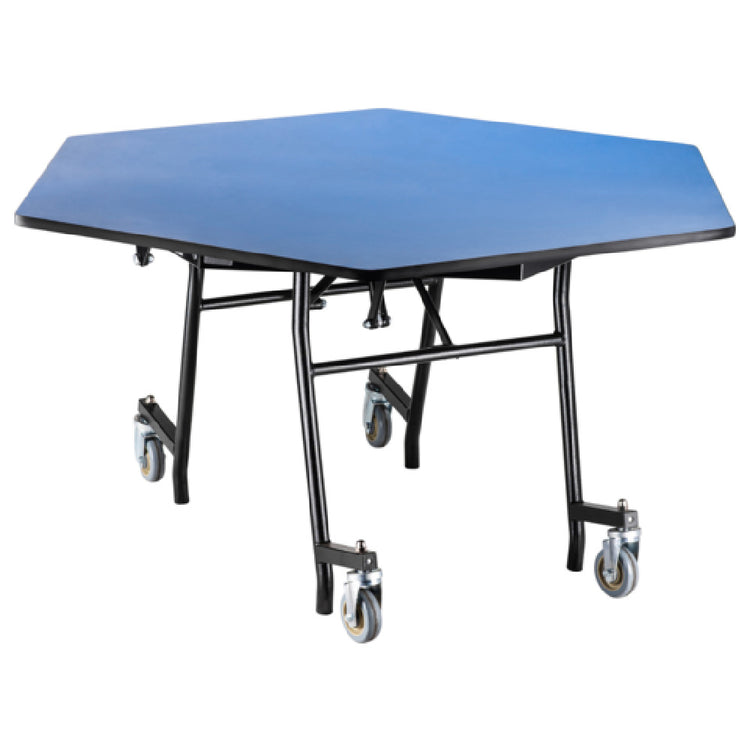 The National Public Seating MTSSF-48H NPS® Mobile EasyFold Cafeteria Table measures 48"W x 48"D x 29"H, offering an optimal size for versatile cafeteria settings. Constructed from 14-gauge steel, this table provides a robust and durable framework that ensures long-lasting performance, making it an ideal choice for environments requiring frequent setup and breakdown. Its high-pressure laminate top adds an additional layer of durability, improving resistance to scratches and everyday wear, while maintaining a sleek and professional appearance. The table's hexagonal shape contributes to space-efficient seating arrangements, fostering community and interaction in dining and study environments. Certified by MAS2 and UL, it adheres to rigorous industry standards, assuring quality and safety. The table can be made ADA compatible, enhancing accessibility for all users in compliance with the Americans with Disabilities Act, thereby addressing the diverse needs of educational institutions, corporate settings, and public spaces. Its mobility feature allows for effortless transport and setup, significantly reducing labor and time involved in arranging spaces for various functions. The National Public Seating MTSSF-48H NPS® Mobile EasyFold Cafeteria Table is a versatile and reliable solution, specifically engineered to meet the demanding needs of high-traffic areas.