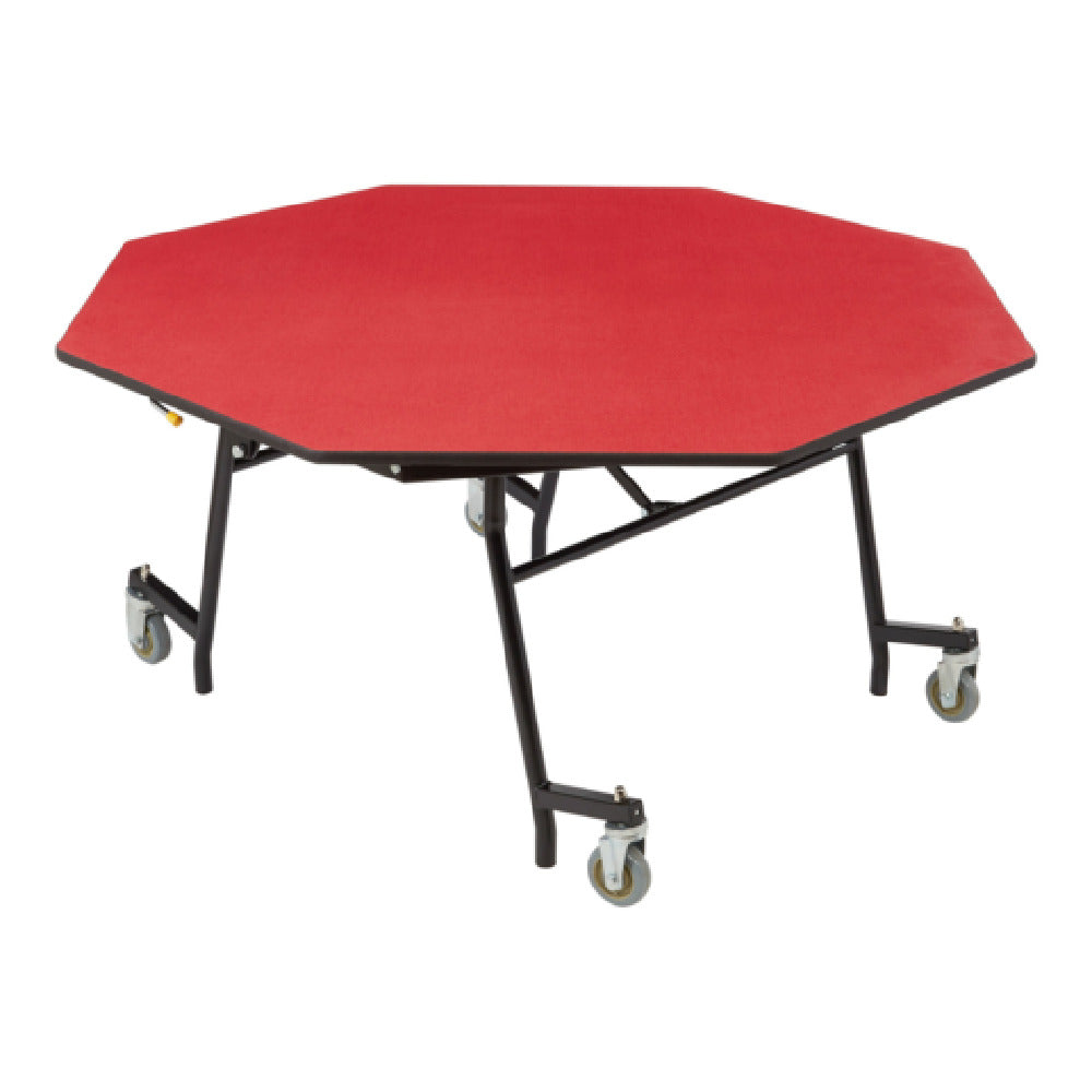 The National Public Seating MTSSF-60O NPS® Mobile EasyFold Cafeteria Table stands out as a robust and versatile solution for various institutional settings. With dimensions of 60"W x 60"D x 29"H, this octagon-shaped table is engineered for functionality and durability, accommodating diverse cafeteria layouts and seating arrangements. Constructed from 14-gauge steel, the table ensures exceptional strength and longevity, making it ideal for high-traffic environments like schools, community centers, and corporate dining areas. The high-pressure laminate top provides a resilient and easy-to-clean surface, capable of withstanding the rigors of daily use while maintaining an attractive appearance. Certified by MAS2 and UL, the table meets high standards for safety and quality, offering peace of mind to facility managers and decision-makers. Furthermore, the design can be made ADA compatible, ensuring accessibility and inclusivity for all users. The mobile EasyFold mechanism enhances convenience, allowing for effortless setup, reconfiguration, and storage, which is particularly beneficial in dynamic settings where space is at a premium. This combination of technical specifications and thoughtful design makes the MTSSF-60O a valuable asset across different market segments within the educational, corporate, and public sectors, where reliability and adaptability are paramount.
