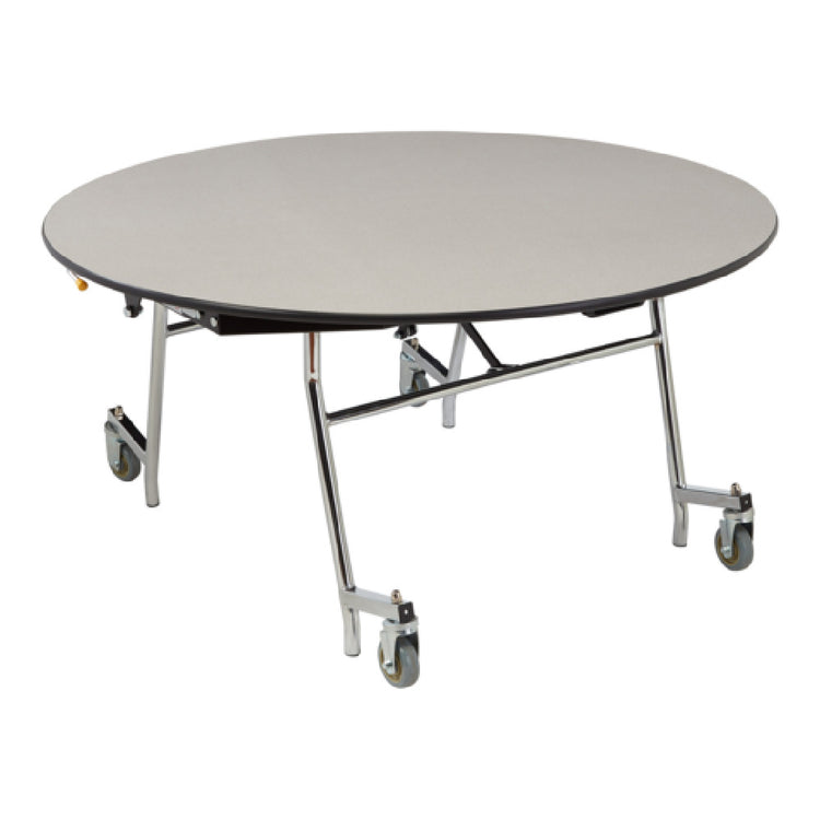 The National Public Seating MTSSF-60R NPS® Mobile EasyFold Cafeteria Table is a robust, versatile solution designed for dynamic cafeteria environments. This 60"W x 60"D x 29"H round table is constructed with 14-gauge steel, ensuring durability and stability, making it suitable for various settings, including schools, corporate cafeterias, and community centers. The table features a high-pressure laminate top, which provides a smooth, resilient surface that is easy to clean and maintain, supporting hygiene standards crucial in food service areas. The MAS2 and UL certifications underline its compliance with rigorous safety and performance standards, offering peace of mind to users. Moreover, it has the capability to be made ADA compatible, broadening its accessibility and usability for all individuals, including those with disabilities. This adaptability makes the MTSSF-60R an excellent choice for institutions seeking inclusivity. Its mobile EasyFold design facilitates effortless transport and storage, optimizing space utilization and operational flexibility. Whether catering to small gatherings or large crowds, this table's combination of strength, convenience, and compliance with safety standards positions it as a valuable asset in diverse environments where efficiency and accessibility are paramount.