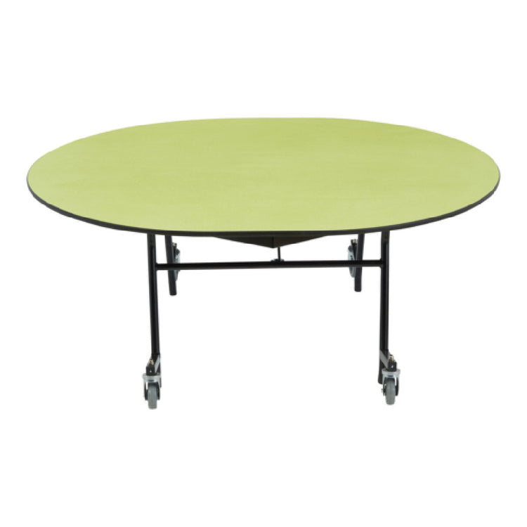 The National Public Seating MTSSF-60V NPS® Mobile EasyFold Cafeteria Table is an ingeniously designed piece of furniture that stands out for its robust construction and versatile application. Measuring 60 inches in width, 72 inches in depth, and 29 inches in height, this oval-shaped cafeteria table is an optimal solution for diverse environments, including school cafeterias, corporate break rooms, and event spaces. It is constructed from 14-gauge steel, ensuring exceptional durability and longevity, ideal for high-traffic areas. The table's high-pressure laminate top offers a smooth and resilient surface that withstands daily wear and tear, making maintenance hassle-free. Certified by MAS2 and UL, it meets high standards for safety and sustainability. The MTSSF-60V can also be configured to be ADA compatible, ensuring accessibility and inclusivity for all users. This adaptability broadens its appeal across various markets, from educational institutions prioritizing student access to corporate settings that require functional and adaptable furniture. The EasyFold feature enhances mobility and storage efficiency, allowing for quick setup and takedown. This combination of features ensures that the National Public Seating MTSSF-60V is a reliable and versatile addition to any communal space.