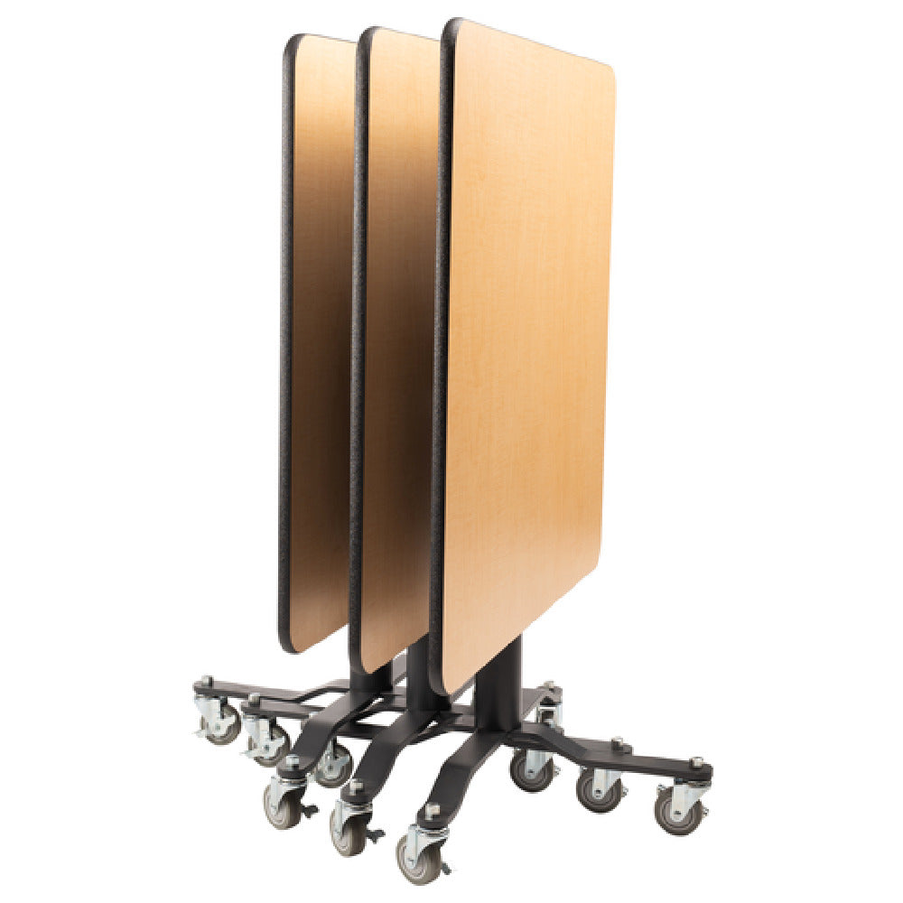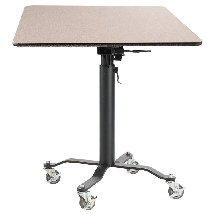 The National Public Seating PCT336 NPS® Premium Plus Café Table 36" x 36" Square is a versatile piece designed for dynamic environments, making it a suitable choice for various industry segments. This café table is highlighted by its vertical folding top, which allows for efficient storage and space management. The table is equipped with a pneumatic lever that ensures smooth height adjustments, catering to different seating preferences and needs. Its robust construction includes a 13-gauge steel pedestal column, which provides excellent stability and durability, making it an ideal solution for high-traffic areas. The table’s 1/2" steel base adds to its sturdiness, while the inclusion of four swivel casters facilitates easy mobility, enhancing its adaptability in cafes, conference rooms, and casual dining areas. Additionally, the table meets ANSI/BIFMA standards, underscoring its quality and safety compliance. The National Public Seating PCT336 combines functionality with a sleek design, serving as a practical option for environments that require flexible seating arrangements without compromising on style or quality.