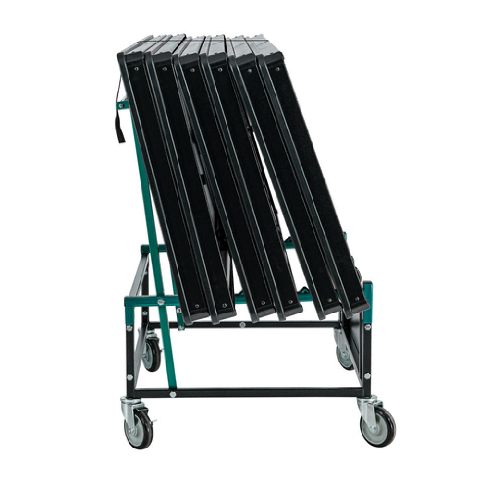 The National Public Seating TAD NPS® Table Assist Dolly is engineered to accommodate up to 10 tables with an impressive 1,000 lb weight capacity, making it indispensable for diverse institutional settings such as schools, event venues, and conference centers. Its robust construction features a 14-gauge square tubular powder-coated frame, ensuring durability and long-term use. Safety is enhanced with a reliable strap and hook system, securing tables during transport. The dolly is equipped with a 7/8" O.D. handle for comfortable maneuvering. Built-in plastic coated supports provide additional stability and protection for tables in transit. Featuring four 5" hard rubber swivel casters, including two that lock, this dolly offers excellent mobility and secure positioning when needed. The TAD NPS® Table Assist Dolly is ANSI/BIFMA certified, attesting to its adherence to quality and performance standards, while the MAS Green Certification highlights its environmental responsibility. This dolly is a versatile solution that addresses the heavy-duty demands of large-scale events and institutional operations, ensuring efficiency and safety in table transportation and storage.