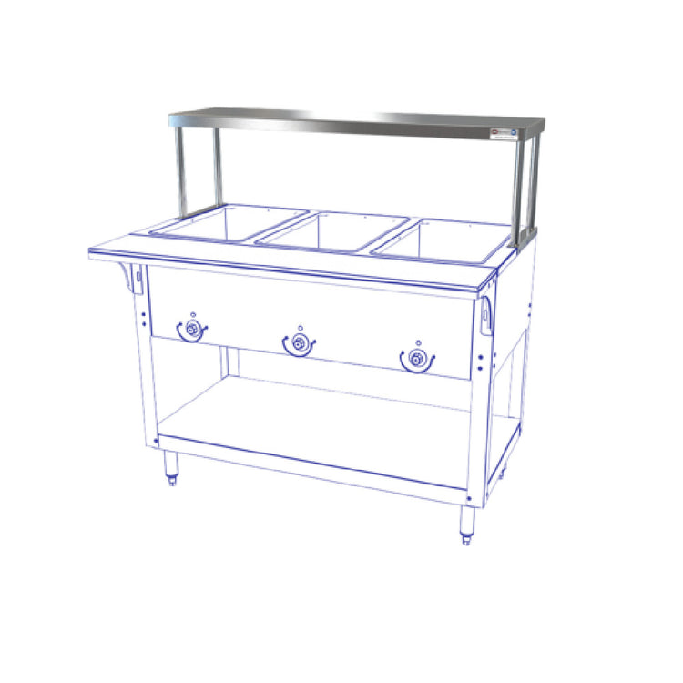 NBR Equipment HT-3-SOS Single Overshelf Fits Hot Food Tables With (3) Wells 44-3/8"W X 12" Deep Top Shelf