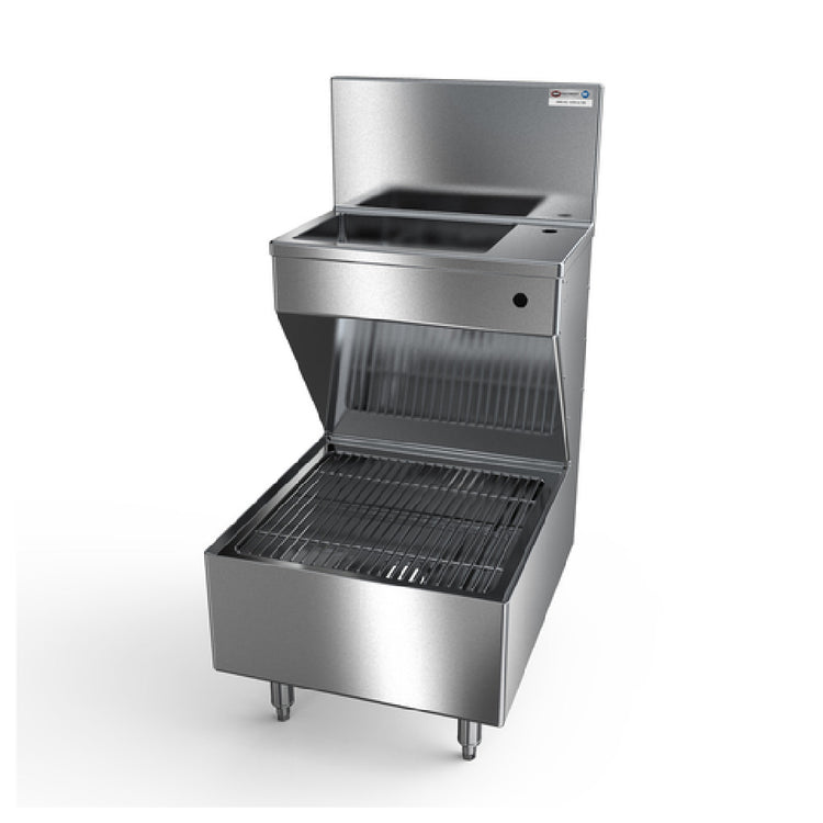 The NBR Equipment HUSC-2025 Hand/Utility Sink Combination - with an overall size of 20-1/2"W x 25-3/4"D x 43-1/4"H - is a versatile solution designed to accommodate various industry needs. This dual-function unit integrates a hand sink and a utility sink, each crafted from high-quality 14/304 stainless steel and 18/304 stainless steel for the deck and base, respectively. The hand sink measures 14"W x 10" front-to-back x 5" deep and includes a deck-mounted faucet hole, making it suitable for quick handwashing tasks. It is complemented by a 10" backsplash for added protection against spills. The utility sink, with dimensions of 18"W x 18" front-to-back x 5" deep, features a wall-mounted pot filler faucet hole and a marine edge, ensuring efficient water flow management. Moreover, stainless steel grating provides enhanced durability and functionality. Equipped with two 3-1/2" drain openings, this sink combination facilitates swift drainage and is adaptable to various plumbing configurations. Its adjustable feet allow for stable installation on uneven surfaces. While faucets are not included, this sink combination's robust construction and practical design make it an essential asset for any commercial kitchen or maintenance area requiring reliable sanitation and utility support.