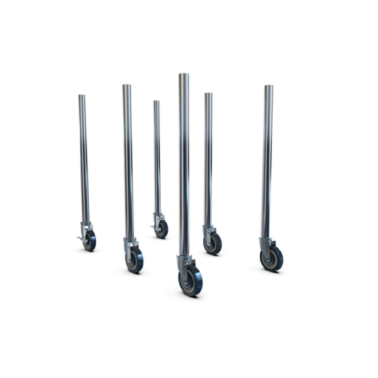 The NBR Equipment LC-S6 Casters 5” Dia. Set Of (6) is an essential component for enhancing the mobility and functionality of standard height tables within various industrial and commercial environments. This set includes six casters, each with a diameter of 5 inches, ensuring smooth and efficient movement across different surfaces. Notably, two of these casters are equipped with brakes, providing users the flexibility to secure their equipment safely and reliably when stationary use is necessary. The casters are designed with stainless steel legs, contributing to their durability and robustness, and perfectly complement tables with a standard height of 35 ½ inches. This feature makes the LC-S6 Casters an excellent choice for restaurant kitchens, laboratories, and manufacturing facilities where mobility, stability, and hygiene are paramount. Their stainless steel construction also offers resistance to corrosion, which is particularly beneficial in environments that require regular cleaning or are exposed to moisture. By integrating the NBR Equipment LC-S6 Casters into your operations, you ensure a high level of versatility and convenience, catering to the demanding needs of diverse segment markets within the industry.